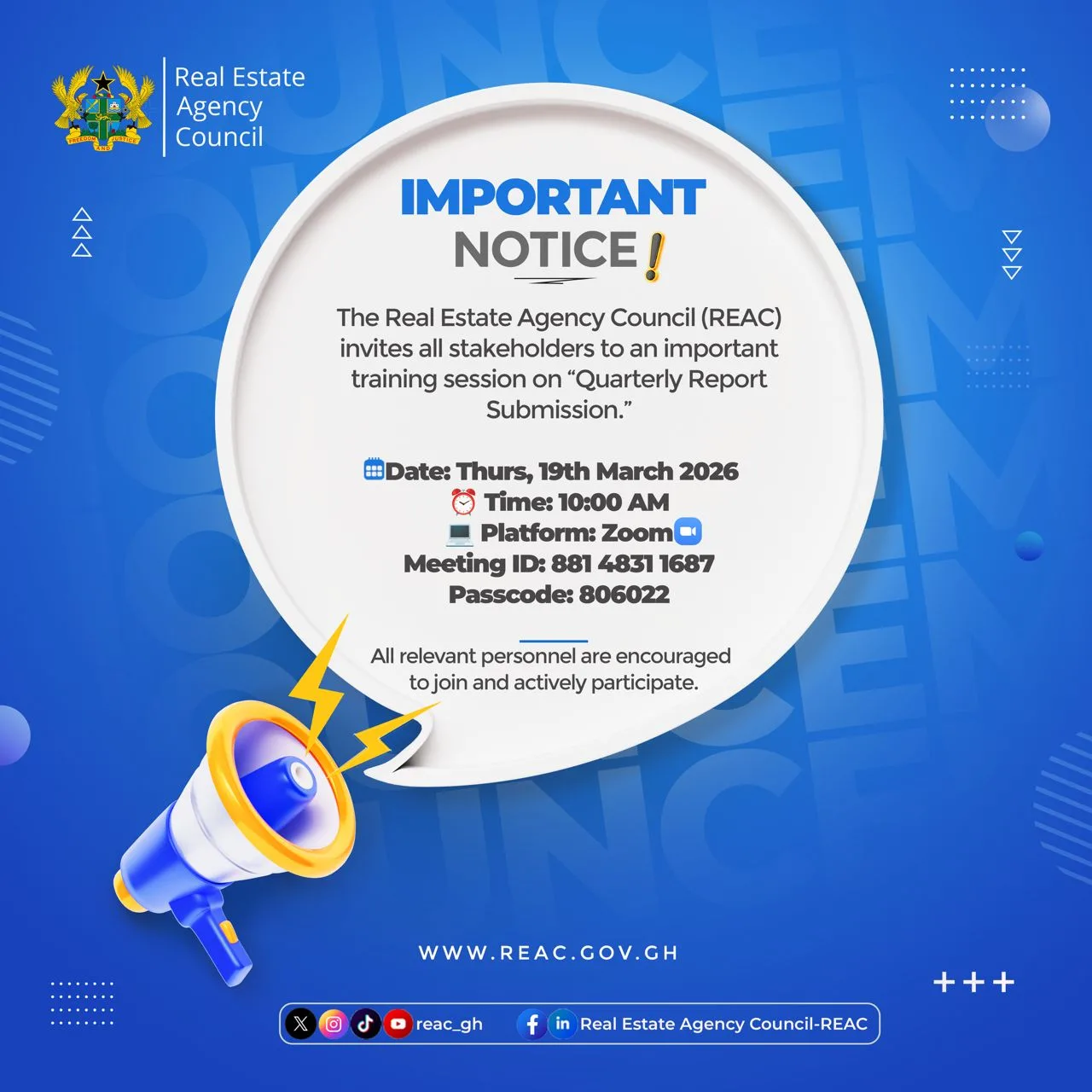 Important announcements from the Real Estate Agency Council